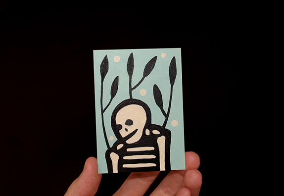 The inaugural series of The Art Hustle was released in July, 2010. Series 1 is distinguished by colorful borders on both the profile and art cards, and by the red wax wrappers. There are 164 cards, with over 75 contributing artists and personalities. There are 15 box top variations.