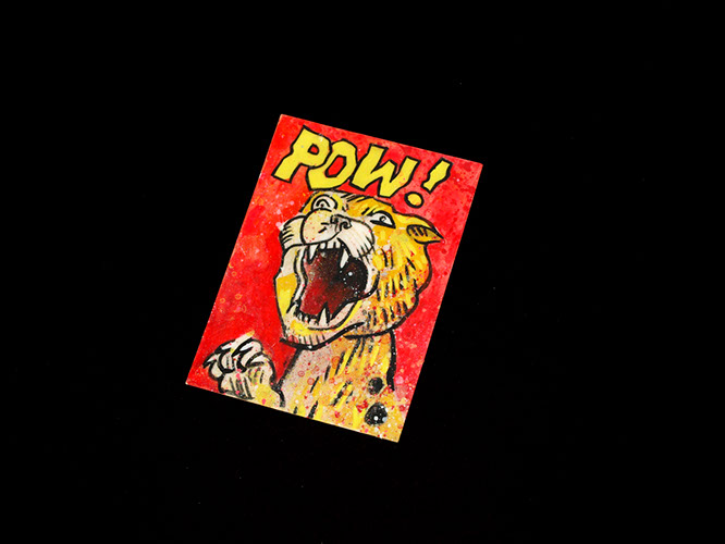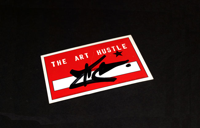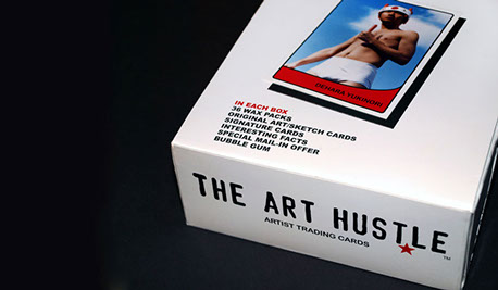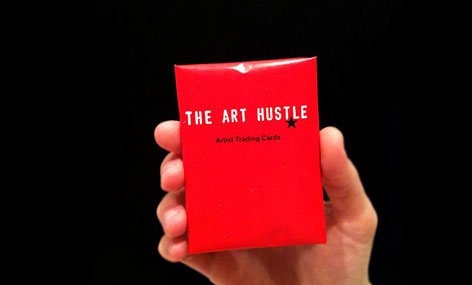 The inaugural series of The Art Hustle was released in July, 2010. Series 1 is distinguished by colorful borders on both the profile and art cards, and by the red wax wrappers. There are 164 cards, with over 75 contributing artists and personalities. There are 15 box top variations.